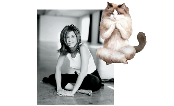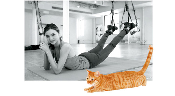 猫最自我的一个典型体现就是睡醒后旁若无人地前腿蹬直,然后向前伸一个大大的懒腰?"猫伸展式瑜伽"就是模仿猫这个动作发展出来的。单就这一个动作来说,它不但能为其他运动热身,而且本身对消除背部僵硬感和疲劳感很有作用。在瑜伽术中,"猫伸展式瑜伽"有很确切的定义:双膝跪地,分膝与臀部同一宽度,小腿及脚背紧贴在地上,脚板外翻——尽量外翻。吸气时,慢慢地将盆骨翘高,腰向下微曲,形成一条弧线;呼气时,慢慢地把背部向上拱起,带动脸向下方,直至感到背部有伸展的感觉。